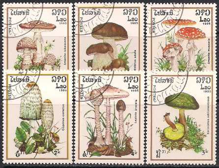 Лаос 1985 год. Грибы. 6 гашеных марок