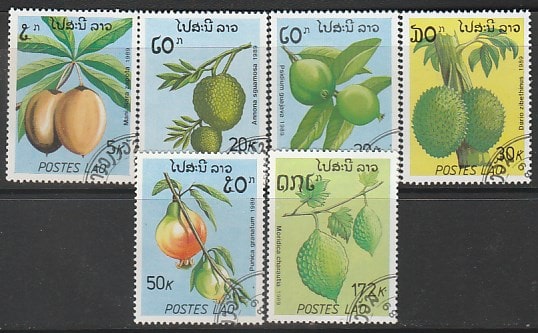 Лаос 1989 год. Фрукты, 6 марок (гашёные)