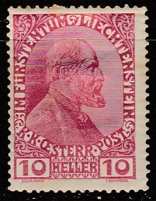 Лихтенштейн 1917 год. Иоганн II Лихтенштейнский, 1 марка из серии (наклейка)