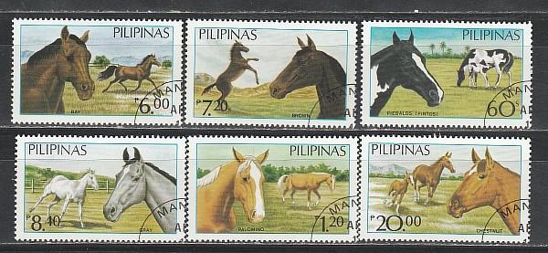 Лошади, Филиппины 1985, 6 гашёных марок