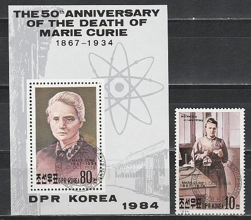 М. Кюри, Спецгашение, КНДР 1984, 1 марка + блок