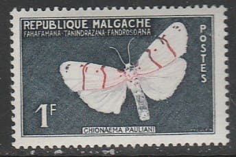 Мадагаскар 1960 год. Бабочка. Хионаема паулиани (ном. 1 Fr), 1 марка из серии.
