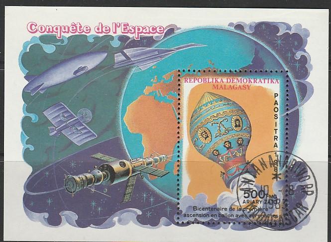 Мадагаскар 1983 год. 200 лет авиации, гашёный блок (ю)