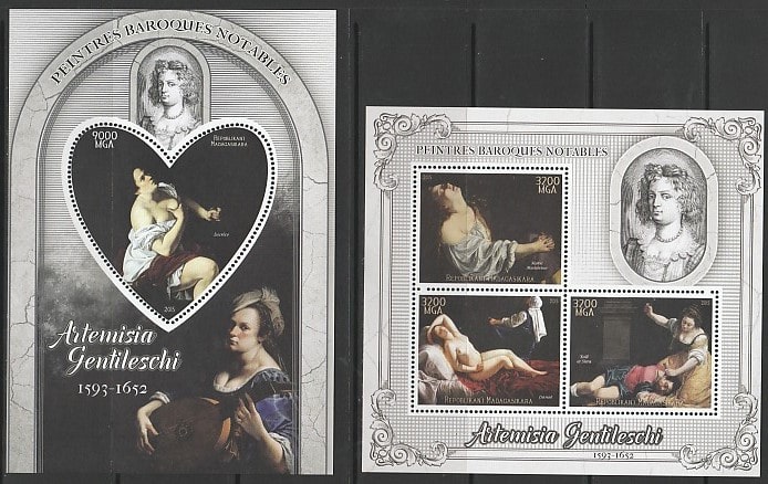 Мадагаскар 2015 год. Итальянская художница Артемизия Джентилески, малый лист + блок Сувенирный выпуск.