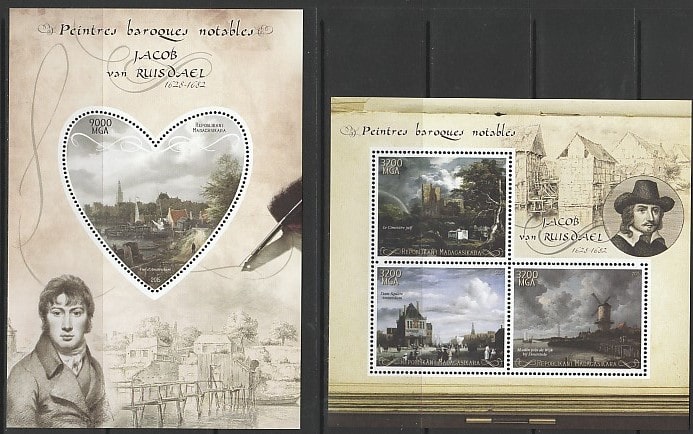 Мадагаскар 2015 год. Нидерландский художник Якоб ван Рёйсдал, малый лист + блок