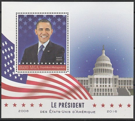 Мадагаскар 2016 год. Президент США Барак Обама, блок.