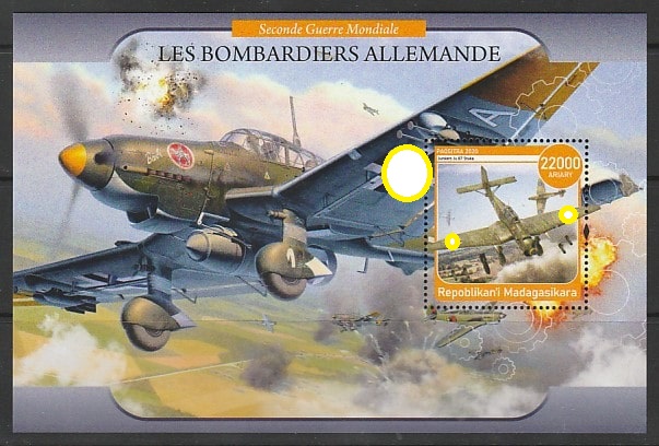 Мадагаскар 2020 год. Немецкие бомбардировщики II Мировой войны, блок.
