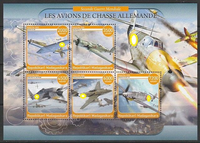 Мадагаскар 2020 год. Немецкие истребители II Мировой войны, малый лист.