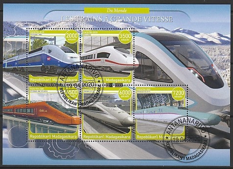 Мадагаскар 2020 год. Высокоскоростные поезда, малый лист (гашёный) Сувенирный выпуск.