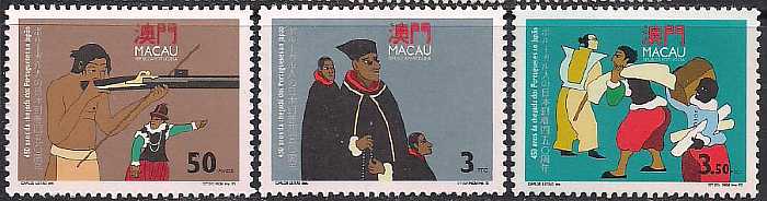 Макао (Китай) 1993 год. 450 лет прибытия португальцев в Японию. 3 марки