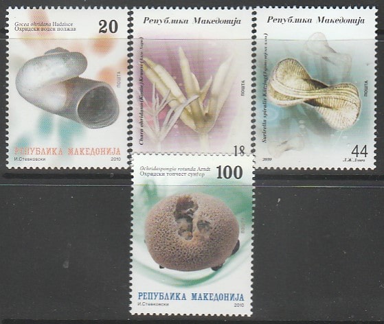 Македония 2010 год. Эндемичные растения и животные Охридского озера, 4 марки (н