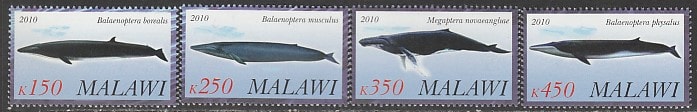Малави 2010 год. Киты, 4 марки Сувенирный выпуск.