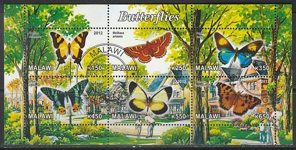 Малави 2012 год. Бабочки, малый лист (гашёный) (III)