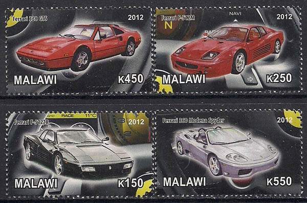 Малави 2012 год. Модели "Феррари" II. 4 марки