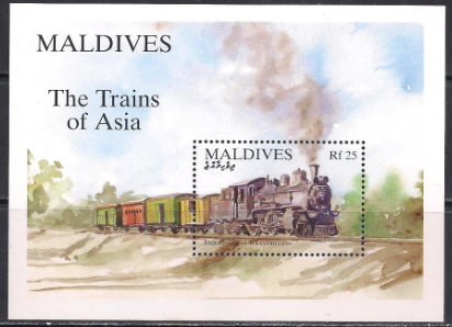Мальдивы 1996 год. Паровоз "4-4-0". Блок
