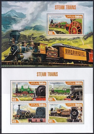 Мальдивы 2013 год. Паровозы, малый лист + блок