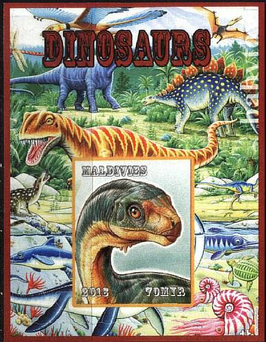 Мальдивы 2016 год. Доисторические животные. 1 блок Сувенирный выпуск толстая бумага