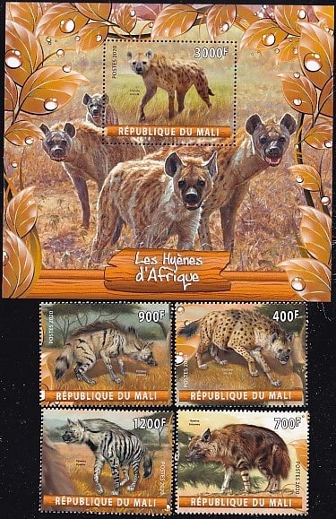 Мали 2020 год. Африканские гиены, блок и 4 марки