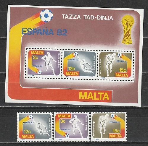 Мальта 1982, ЧМ в Испании, 3 марки + блок