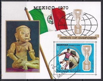 Манама (Аджман) 1970 год. ЧМ по футболу в Мексике. Гашеный блок