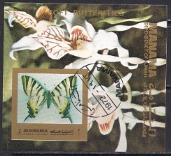 Манама (Аджман) 1972 год. Бабочки и орхидеи (2). Гашеный блок без зубцов