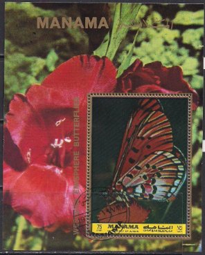 Манама (Аджман) 1972 год. Цветы и бабочки. Блок (гашеный)