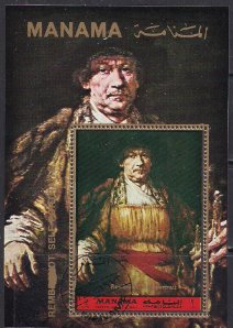 Манама (Аджман) 1972 год. Рембрандт. Автопортрет. Гашеный блок