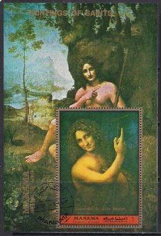 Манама (Аджман) 1972 год. Живопись Леонардо да Винчи. Гашеный блок