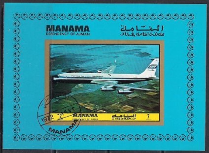 Манама (Аджман) 1972 год.Самолет "Боинг-707". Гашеный блок без зубцов