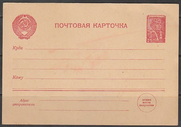 Маркированная ПК. Лётчик, 25 коп., 1952-1953 год (№ 1.1.161)