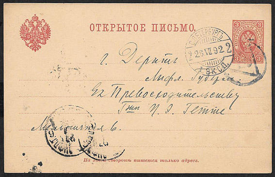 Маркированный бланк открытого письма. Выпуск март 1890 г.