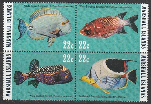 Маршалловы острова 1985 год. Рыбы, квартблок.