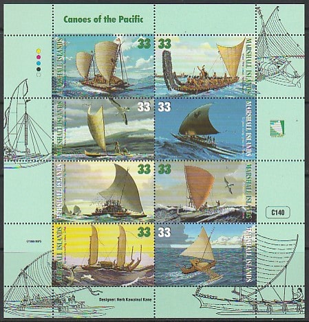 Маршалловы острова 1999 год. Каноэ в Тихом океане, ном. 33, малый лист. (6)