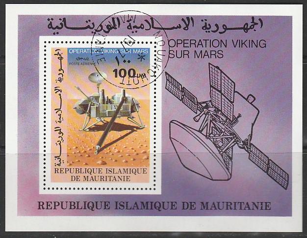 Мавритания 1977 год. Марсианские зонды. Забор образцов грунта, гашёный блок (ю)