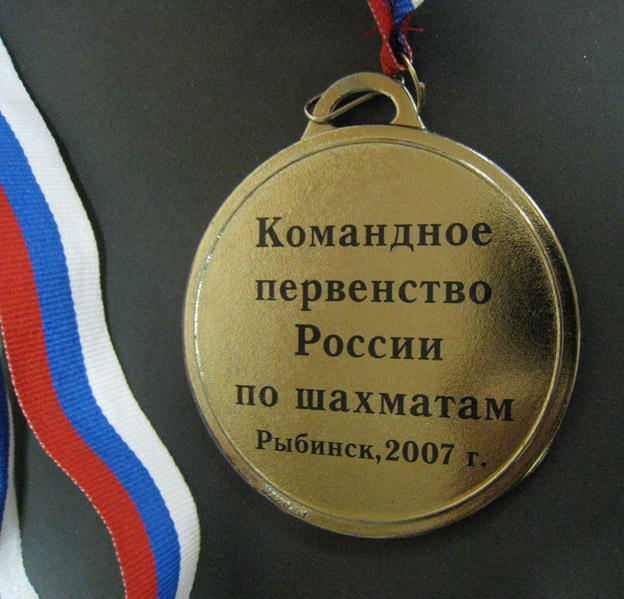 Медаль 3 место. Командное первенство России по шахматам. Рыбинск, 2007 г.