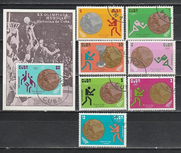 Медалисты Олимпиады в Мюнхене, Куба 1973 год, 7 гашёных марок + блок.
