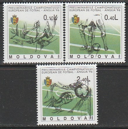 Молдавия 1994 год. Чемпионат Европы по футболу 1996 года в Англии, 3 марки.