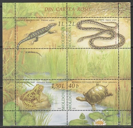 Молдавия 2005 год. Рептилии, занесенные в Красную Книгу Молдовы, блок.
