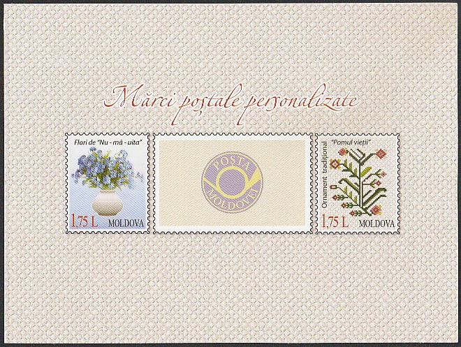 Молдавия 2013 год. Поздравительные марки. Ваза с букетом. Незабудки, малый лист (сувенирная обложка)
