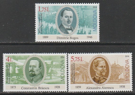Молдавия 2014 год. Бессарабские солдаты и политики Первой мировой войны, 3 марки.