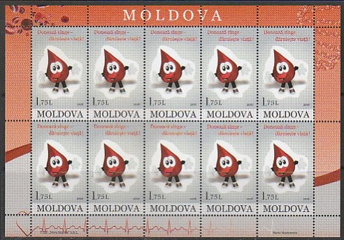 Молдавия 2016 год. Донорство крови, малый лист.