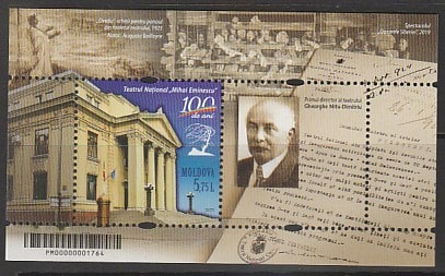 Молдавия 2021 год. 100 лет Национальному театру Михая Эминеску, блок (н