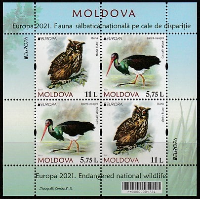 Молдавия 2021 год. EUROPA. Редкие птицы, малый лист (н