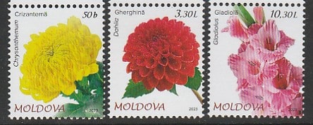 Молдавия 2023 год. Садовые цветы, 3 марки (н