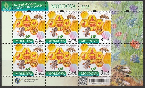 Молдавия 2023 год. Защитите пчёл - жизнь на Земле, малый лист (н