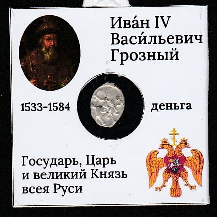 Монета Иван IV Васильевич Грозный 1533-1584 годы. Деньга, Москва.