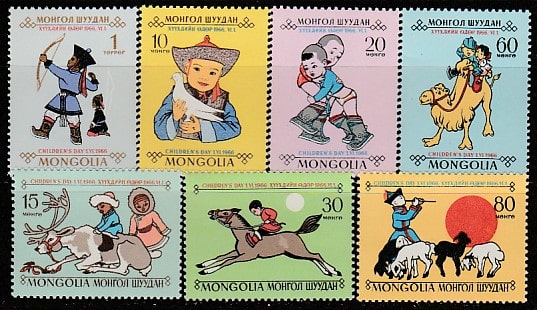 Монголия 1966 год. День детей,7 марок. (3,5/1,7)