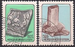 Монголия 1976 год. Археологические находки. 2 гашеные марки