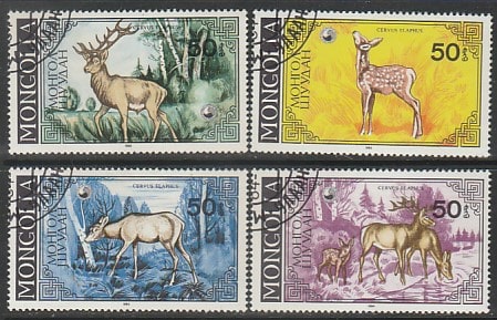 Монголия 1984 год. Олени, 4 марки (гашёные) (4,5/1,6)