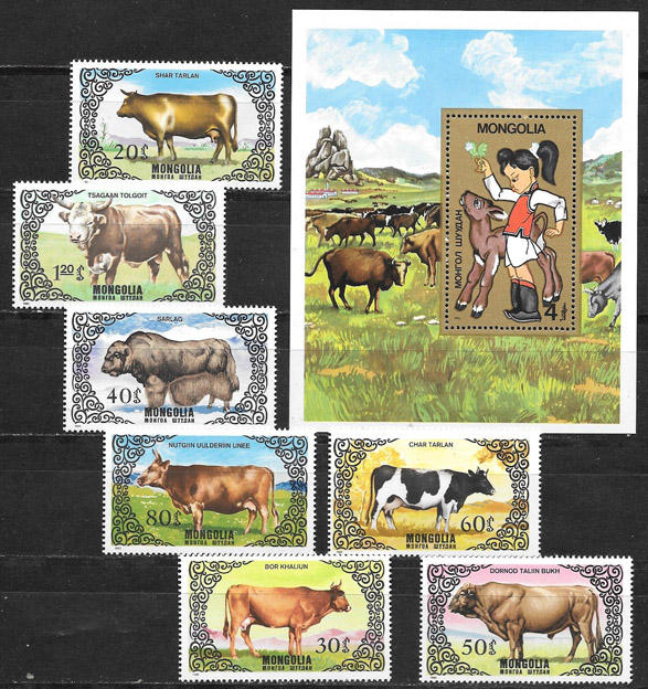 Монголия 1985 г, Племенное скотоводство, животные, 7 марок + блок.